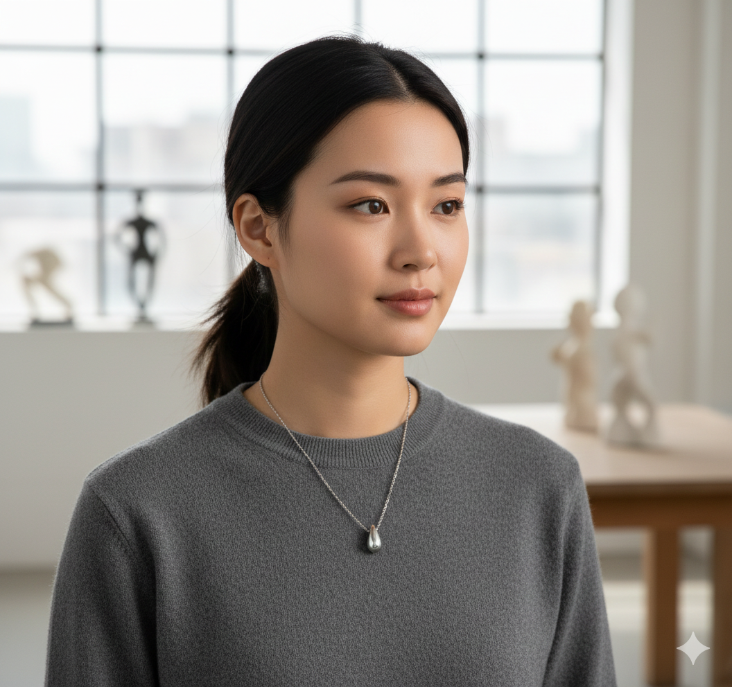 Stainless Steel Silver Teardrop Necklace for Women