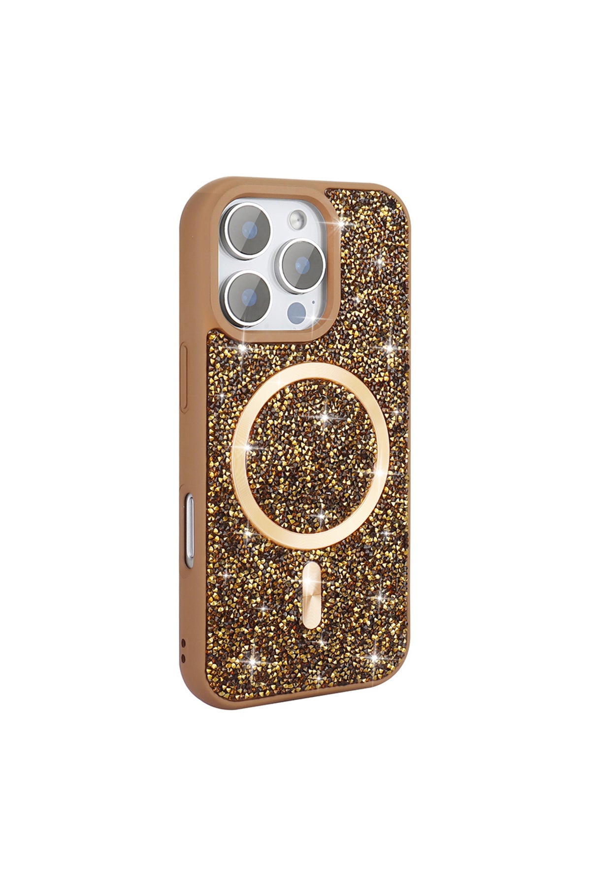 iPhone 16 Pro Max Case Glitter Mosaic Magnifying Glass with Rhinestones and Diamonds
