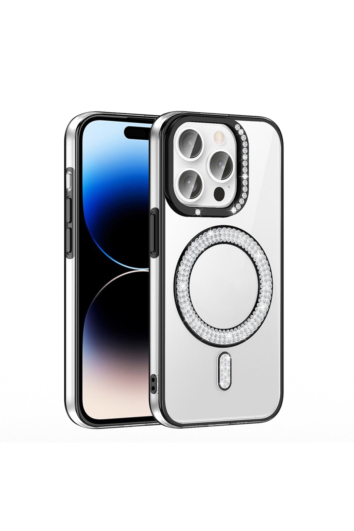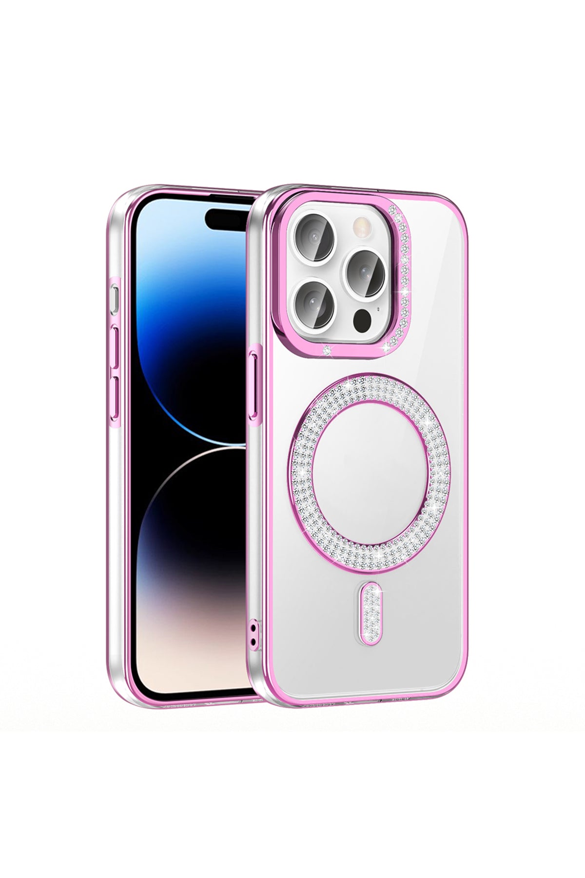iPhone 14 Pro Max Case Karetta Diamond Stone Patterned Magenta Cover