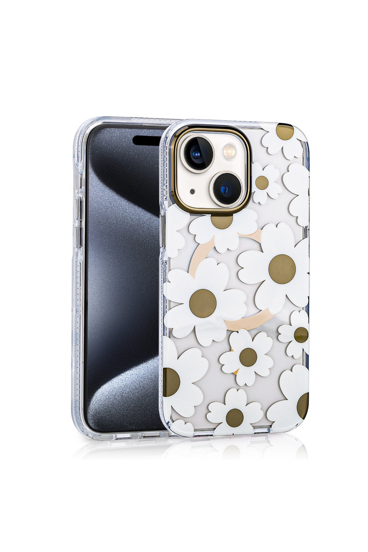 iPhone 15 Case with MagSafe Feature, Daisy Pattern Cover